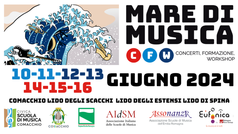 10-11-12-13 GiugnoDELTA MUSIC SUMMER SCHOOL Per le Scuole di Musica che lo desiderano Assonanza in collaborazione con la Civica Scuola di Musica di Comacchio, è disponibile ad organizzare ulteriori 4 giornate di studio